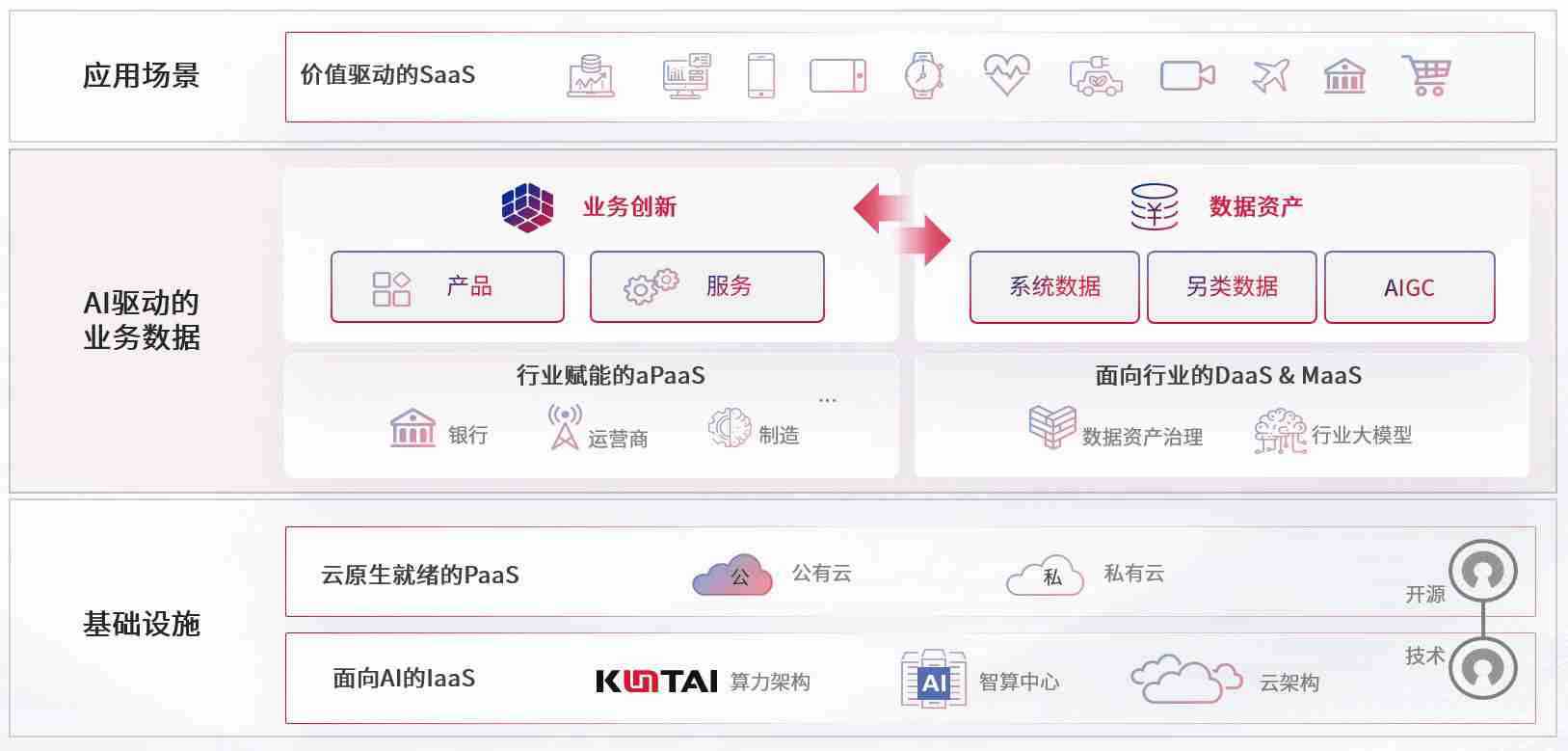 数字时代,,,,围绕企业数字化转型的关键要素,,,,PA直营数码开创性的提出数云融合战略和技术体系框架,,着力在云原生、、、、数字原生、、AI原生和信创产业上架构产品和服务能力,,为处在不同数字化转型阶段的快消零售、、、汽车、、、、金融、、医疗、、、政企、、、教育、、运营商等行业客户提供泛在的敏捷IT能力和融合的数据驱动能力,,构建跨界融合创新的数字业务场景和新业务模式,,,助力企业级客户建立面向未来的核心能力和竞争优势,,,全面推动社会的数字化、、、、智能化转型升级。。